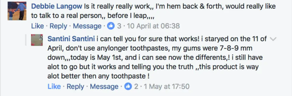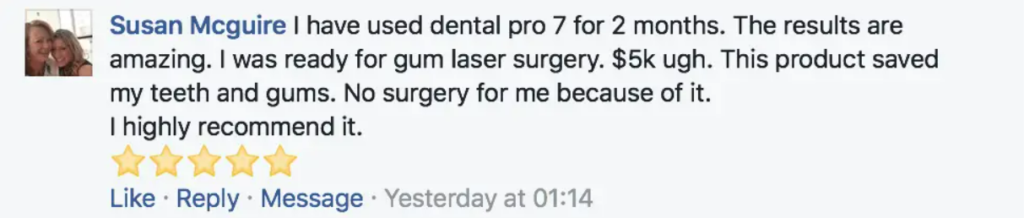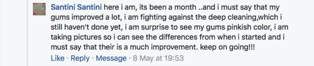 We don’t claim Dental Pro 7 will regrow or regenerate lost gum tissue, it will however help to stop any further recession from happening and help tighten up the existing gum tissue, many users have reported they have seen regrowth/regeneration while using Dental Pro 7 but this isn’t ‘typical results’